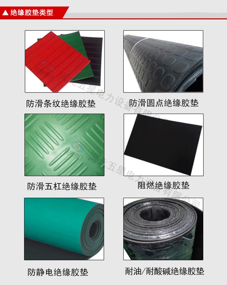絕緣膠墊產(chǎn)品顏色為黑色、紅色、綠色。 不含雜質(zhì):原生橡膠材質(zhì),不含次生膠,切面不會有粉末 柔韌性好:具有優(yōu)良的絕緣性能,彈性強(qiáng),拉伸強(qiáng)度大 光澤度高:原生橡膠材質(zhì),無任何塑料成分,表面光澤度高 無氣泡:五星電力絕緣膠墊,表面無氣泡,無裂痕
